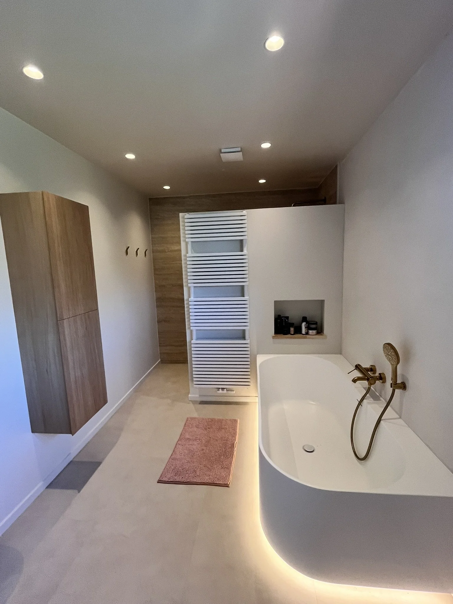 Van tegelwerk en sanitair tot maatkasten en afwerking: wij leveren een badkamer af die niet alleen mooi oogt, maar ook jarenlang meegaat. Dankzij onze ervaring en vlotte samenwerking garanderen we een strak resultaat, zonder zorgen voor jou.